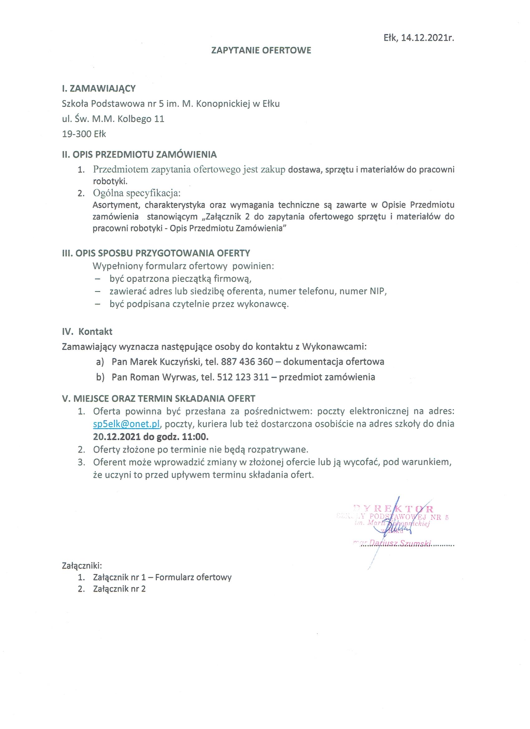zapytania ofertowego sprzętu i materiałów do pracowni robotyki - Opis Przedmiotu Zamówienia”